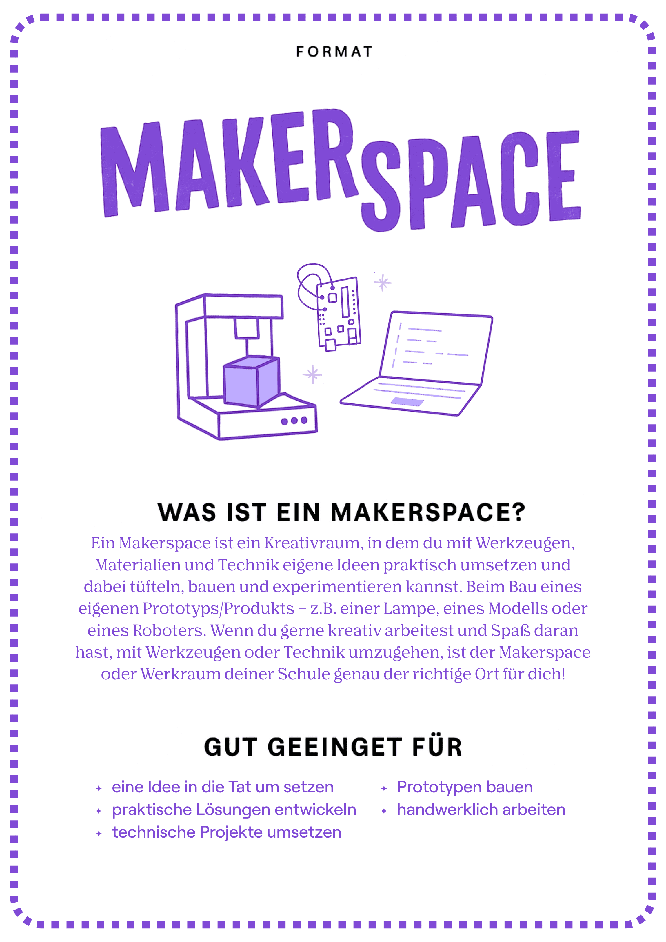 Wie ihr bereits an den anderen Projekten im Showroom gesehen habt, können ganz unterschiedliche Ergebnisstypen entstehen. Welche Form soll euer Projekt am Ende haben?